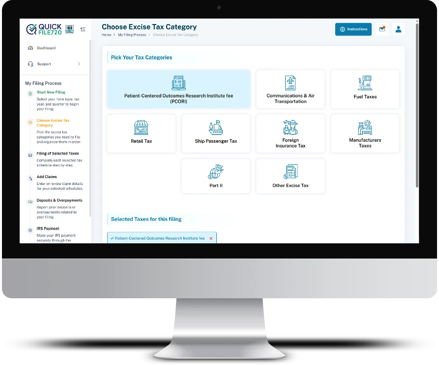 QuickFile720 is directly authorized by the IRS for secure and smart 720 e-filing, ensuring compliance with all IRS regulations. Our portal guarantees that your PCORI submissions get IRS approval in a few minutes.